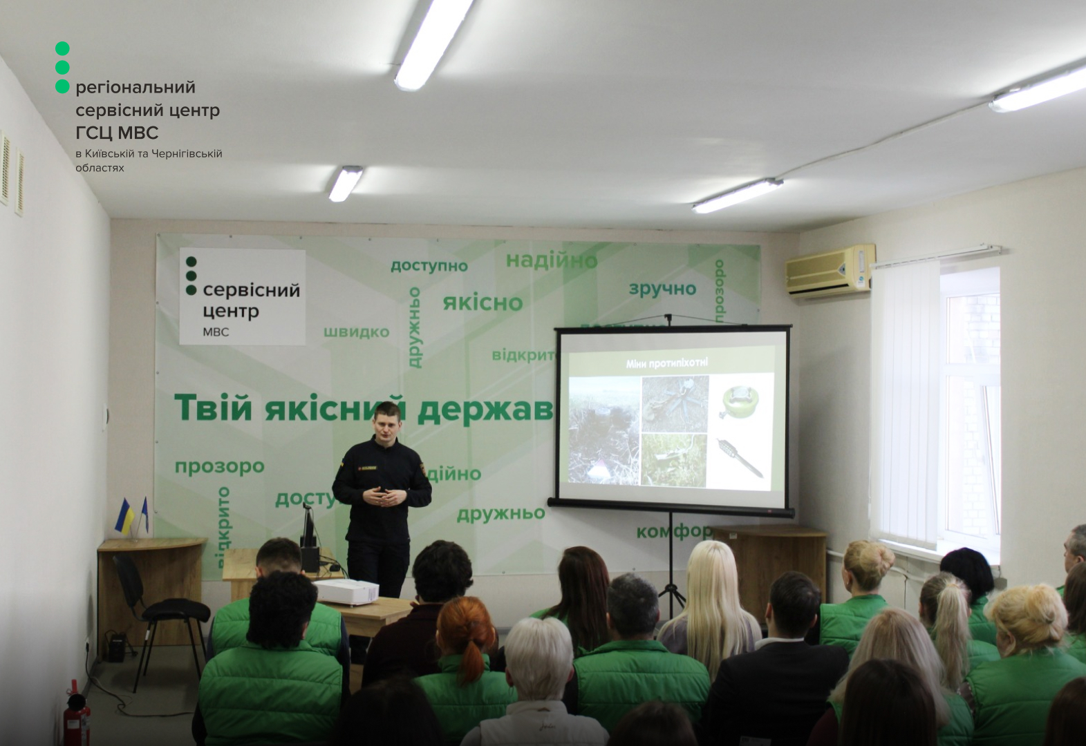 Важливою частиною заняття стала тема мінної небезпеки. Учасникам розповіли, як розпізнати потенційно небезпечні предмети, яких дій слід уникати та як діяти у разі їх виявлення. Такі знання є особливо актуальними в умовах сьогодення і сприяють підвищенню рівня безпеки як працівників, так і відвідувачів сервісних центрів МВС.